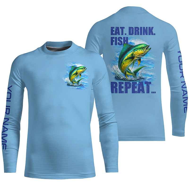 Mahi mahi (Dorado) Fishing Custom Long Sleeve Performance Fishing shirts Eat Drink Fish Repeat | Blue NQS6610