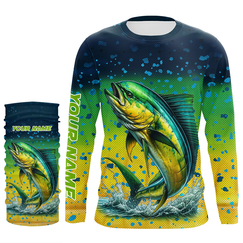 Personalized Mahi mahi Fishing jersey, Dorado scales UV protection performance saltwater fishing shirt NQS6017