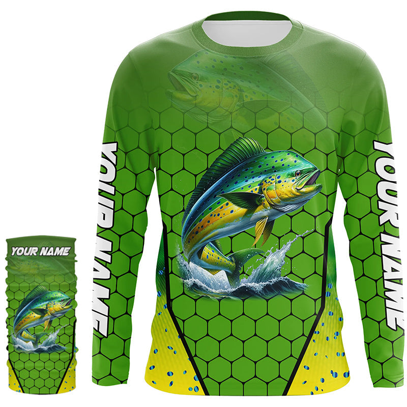 Personalized Mahi mahi green scales Performance Long Sleeve Fishing Shirts, Tournament Fishing Jerseys NQS7457