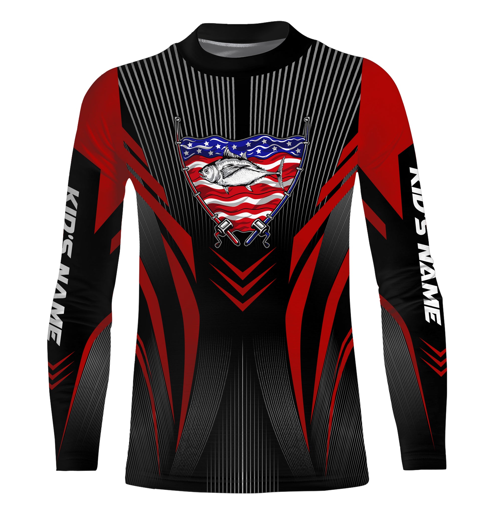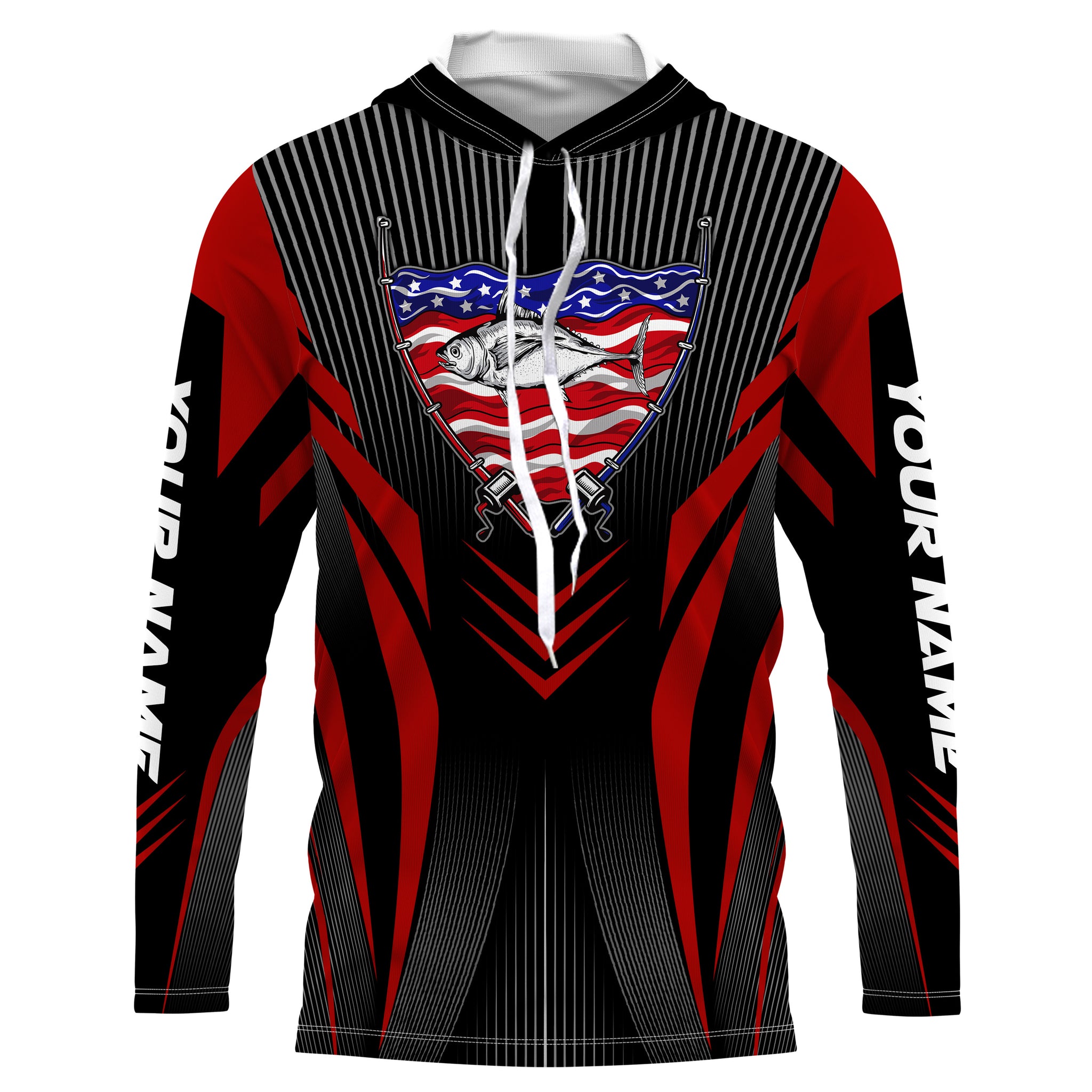 Tuna Fishing American Flag Custom performance Long Sleeve Shirt, Patriotic Fishing jerseys for fisherman TTN20