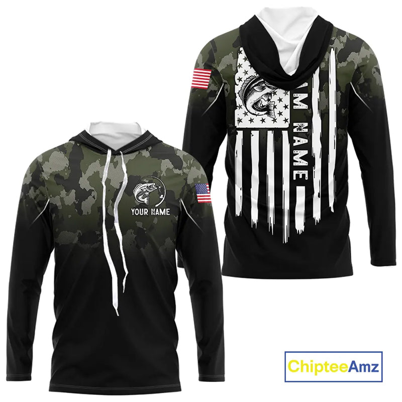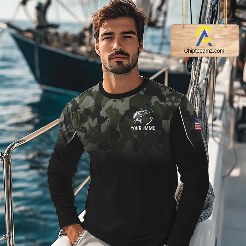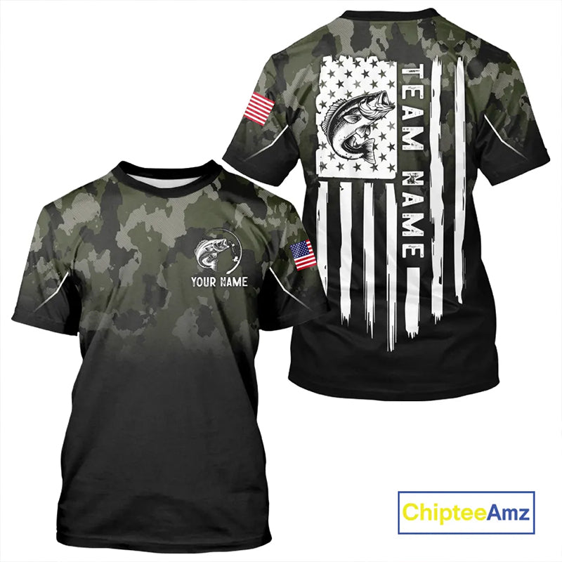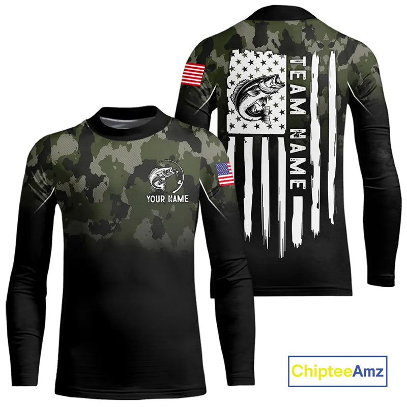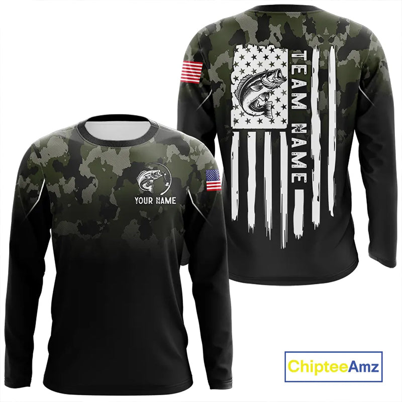 Black green camo American Flag Custom Largemouth Bass Fishing team shirts, bass fishing jerseys NQS11359