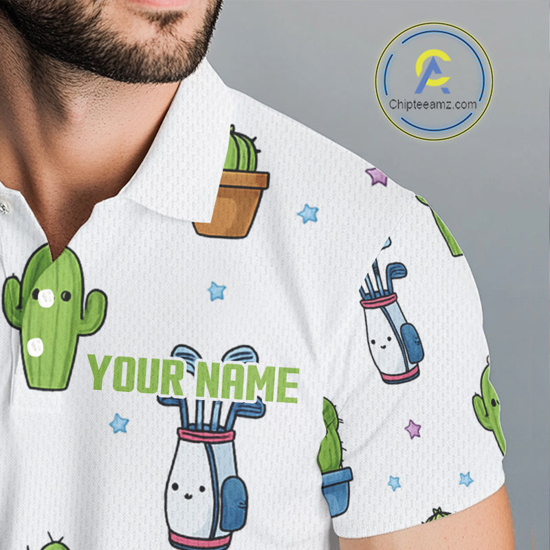 Argyle Pattern Mens Golf Polo Shirts Funny Cactus Flower Custom Cactus Golf Shirt Golfer Gifts NHN0012
