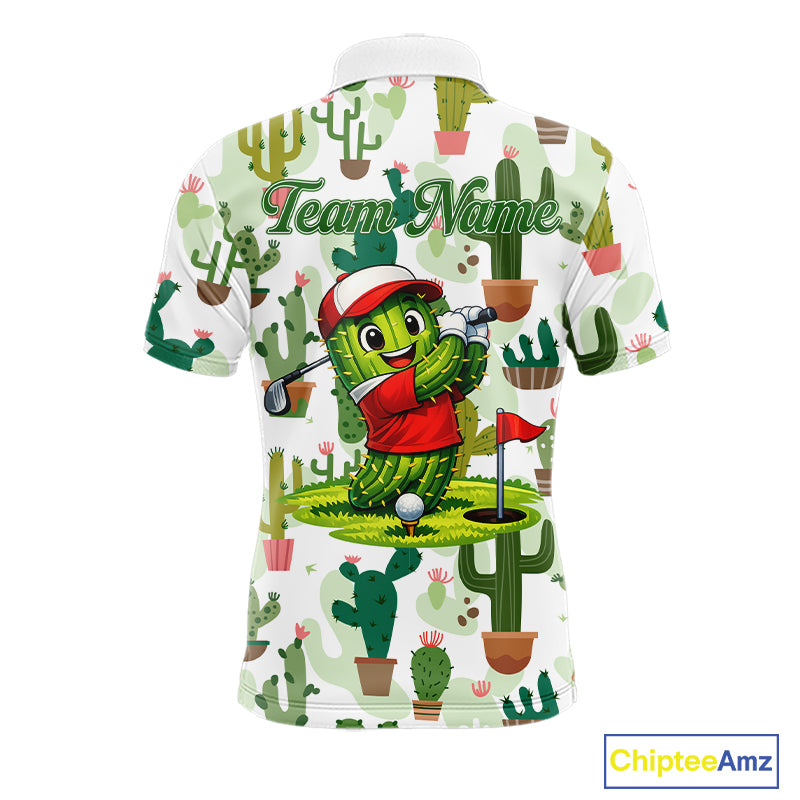 Funny Cactus Flower Mens Golf Polo Shirt Custom Name Golf Tops, Cactus Golf Shirt Personalized NHN0237