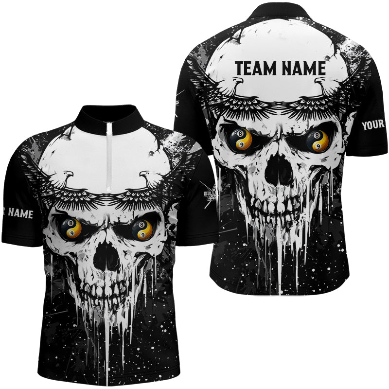Personalized Black White Grunge Skull Ying And Yang Eyes Men Billiard Shirts, Funny Billiard Jersey TDM3166