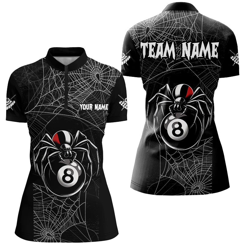 Funny Spider Web 8 Ball Pool Black Billiard Shirts For Women Custom Spider Billiard Halloween Shirts TDM2587