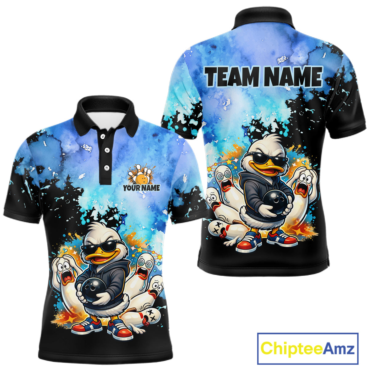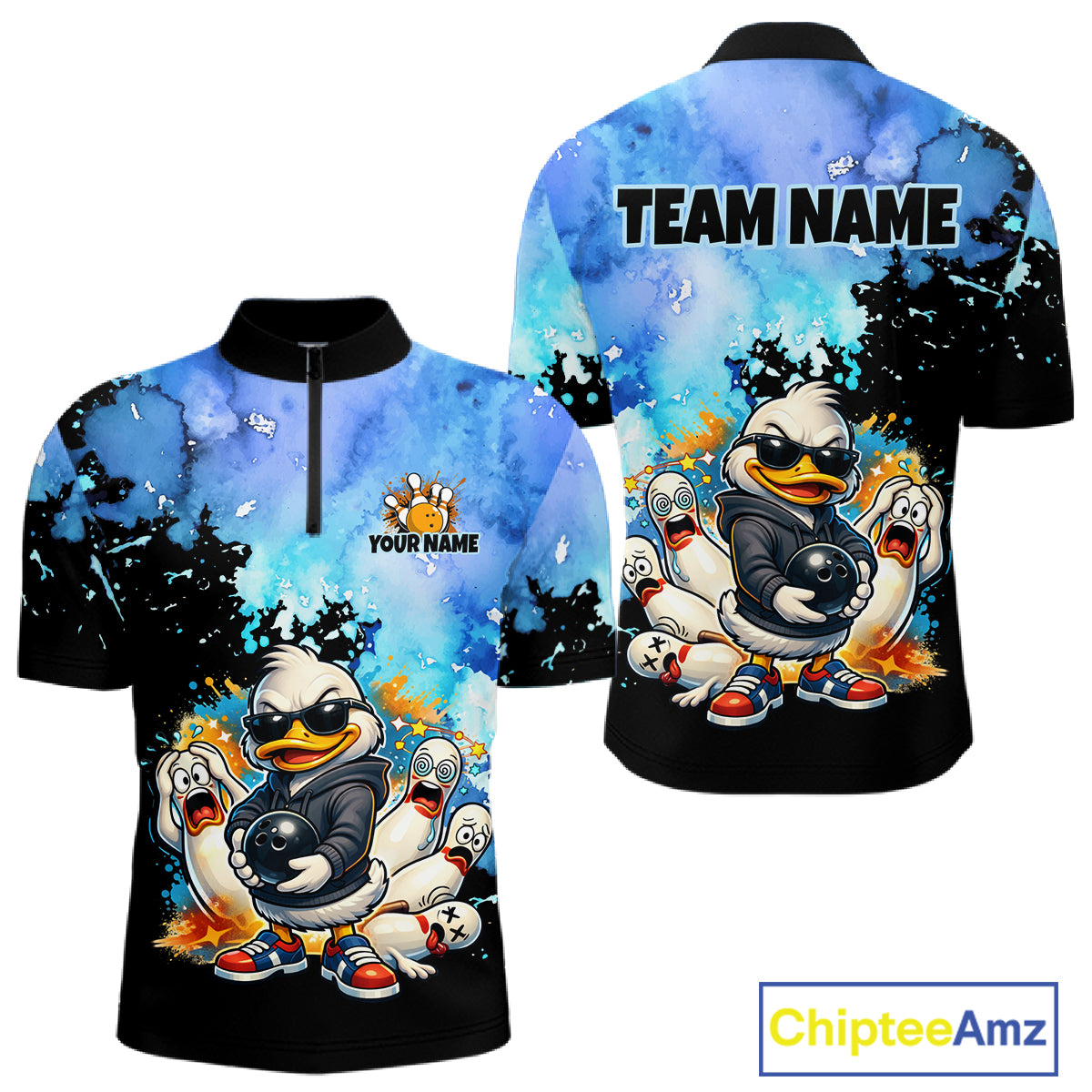 Funny Duck Bowling Team Shirt for Men Custom Bowling League Outfit Polo & 1/4-Zip QZT860