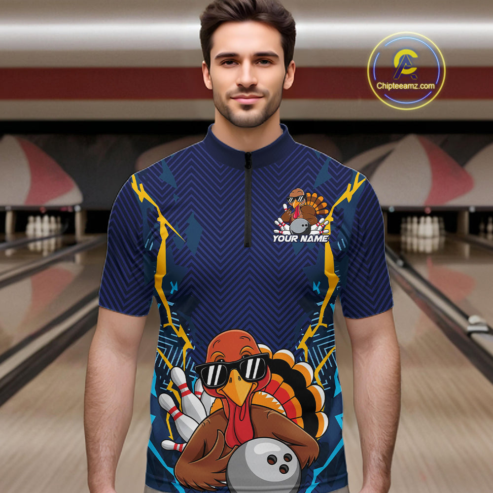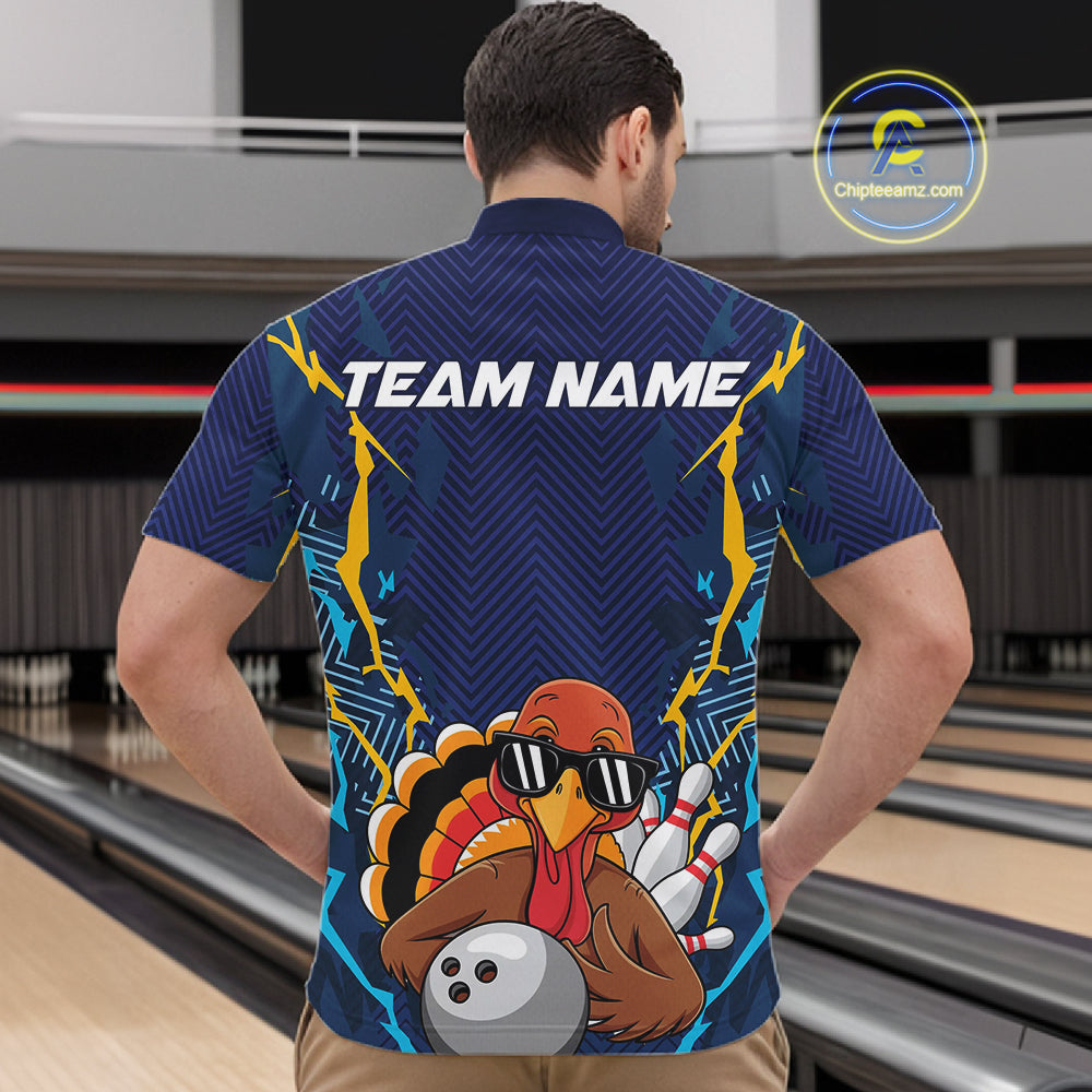 Custom Funny Turkey Bowling Team Shirts For Men, Thanksgiving Bowling Uniform Bowler Outfit IPHW7872