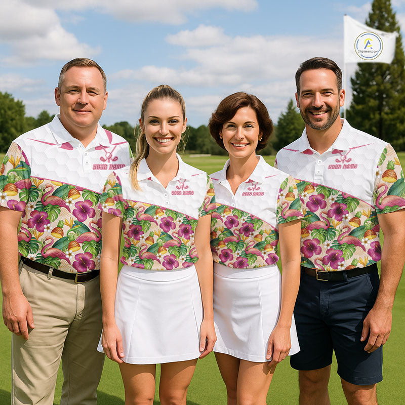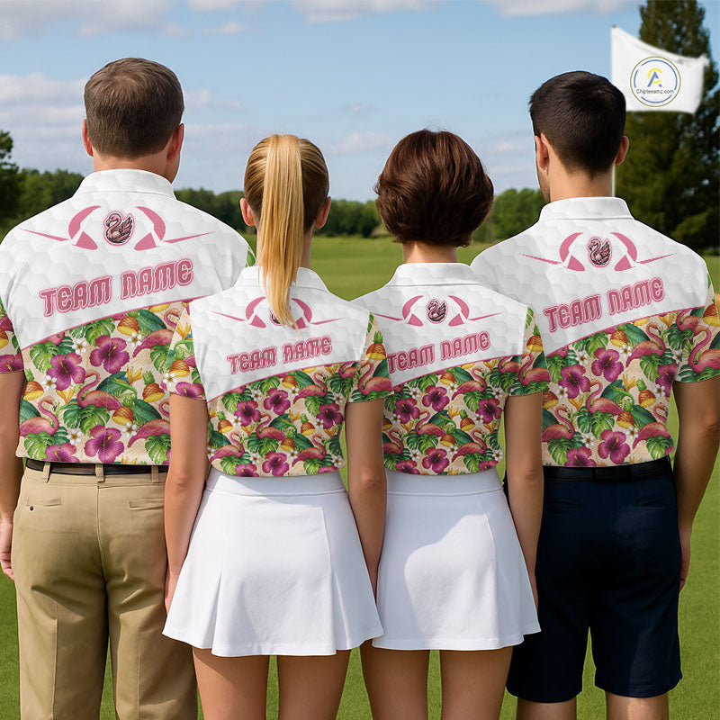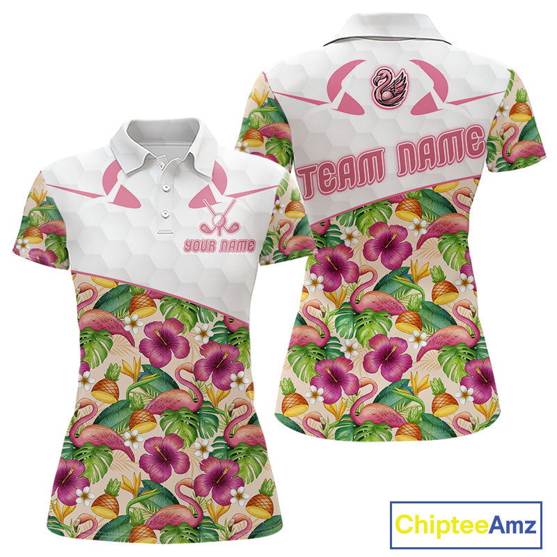 Funny Flamingo Womens Golf Polo Shirt Floral Tropical Custom Pink Golf Shirts Golfer Gift Apparel NHN0107