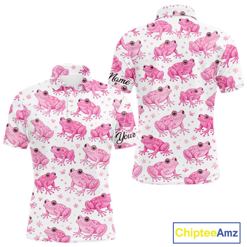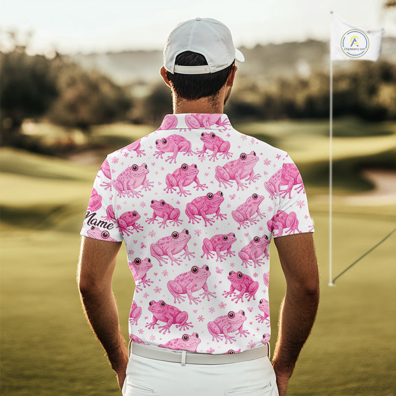 Funny Pink Frog Pattern Mens Golf Polo Shirts Custom Golf Attire For Men Personalized Golfer Gifts NHN0134