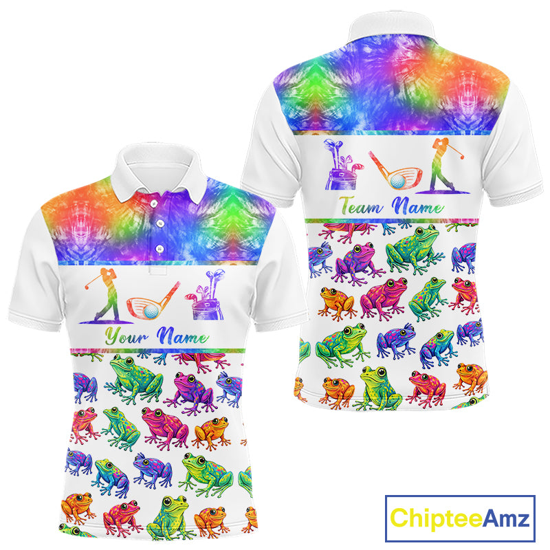 Funny Tie Dye Frog Pattern Mens Golf Polo Shirts Custom Watercolor Golf Attire For Men, Golf Gifts NHN0135
