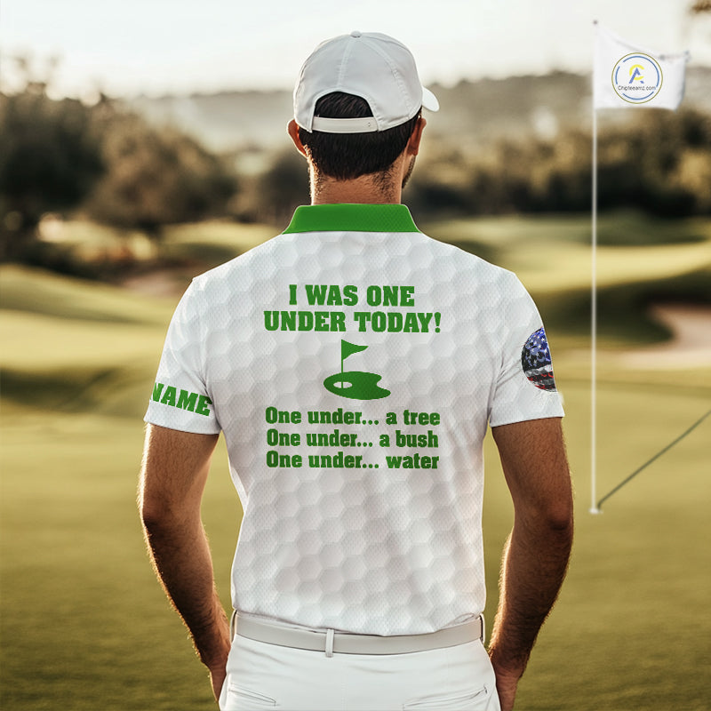 Funny Mens golf polo shirts green and white custom I was one under today, under a tree, bush, water NQS10165