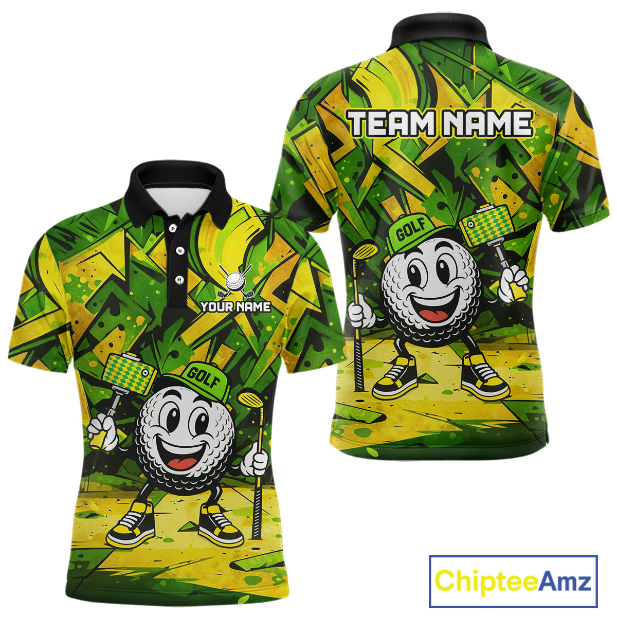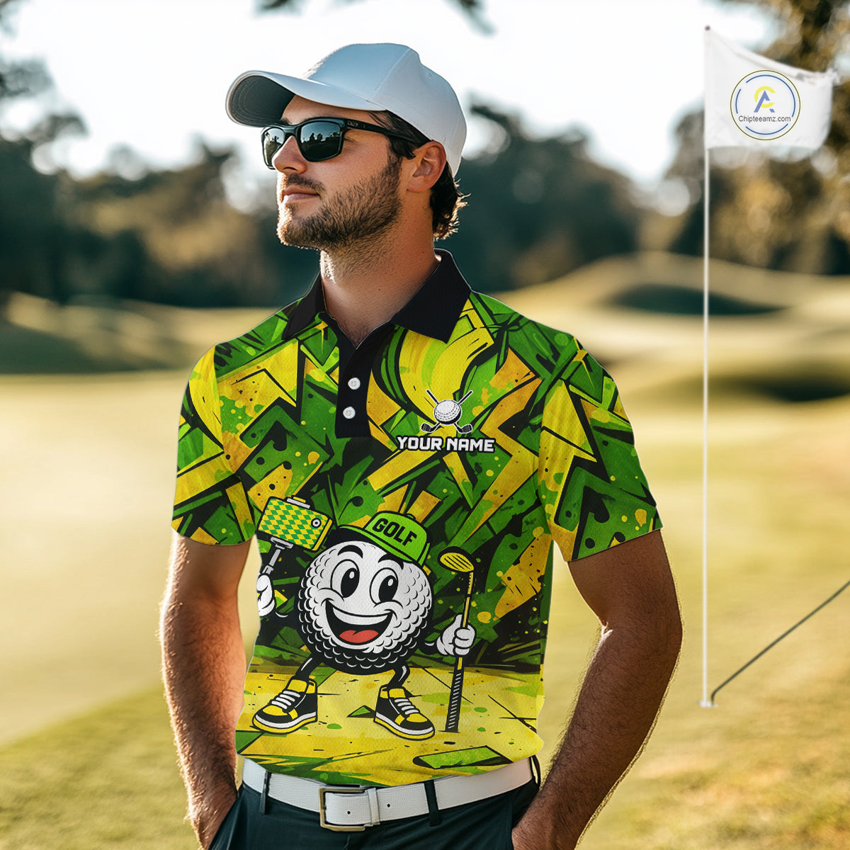Green and Yellow camo funny golf ball Mens golf polo shirts custom team golf outfits for men NQS10176