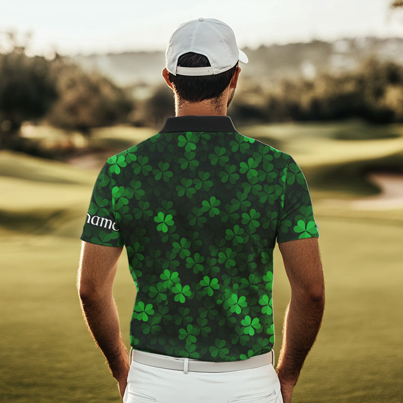 Green shamrock pattern funny Skeleton Mens golf polo shirts custom St Patrick Day golf attire for men NQS9513