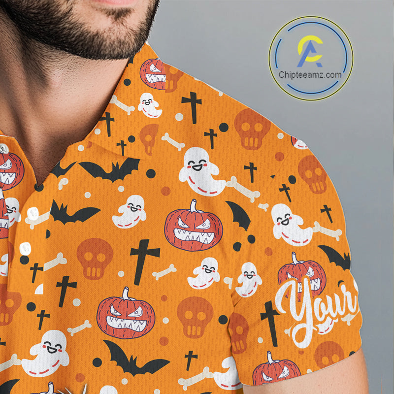 Personalized funny orange Halloween pattern mens golf polo shirts best mens golf wears NQS10314