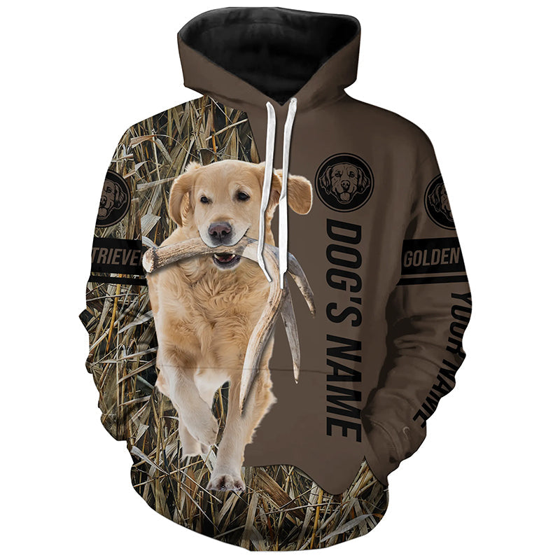 Golden Retriever Hunting dog customized Name Shirt, camo and brown color FSD4672