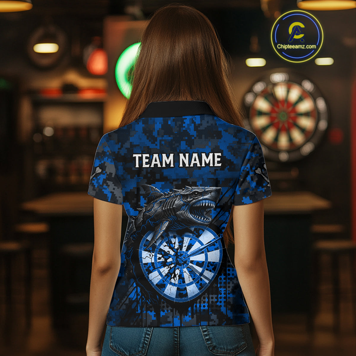 Custom Blue Digital Camo Dartboard Horror Shark Darts Polo Shirt For Women Dart Gifts NYN1966