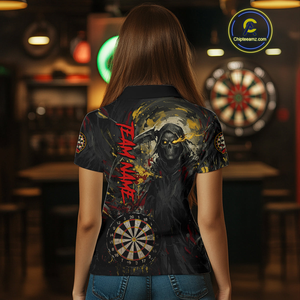 Custom Red Yellow Splatter Grim Reaper Men Darts Polo Shirt Cracked Dart Jerseys NYN1980
