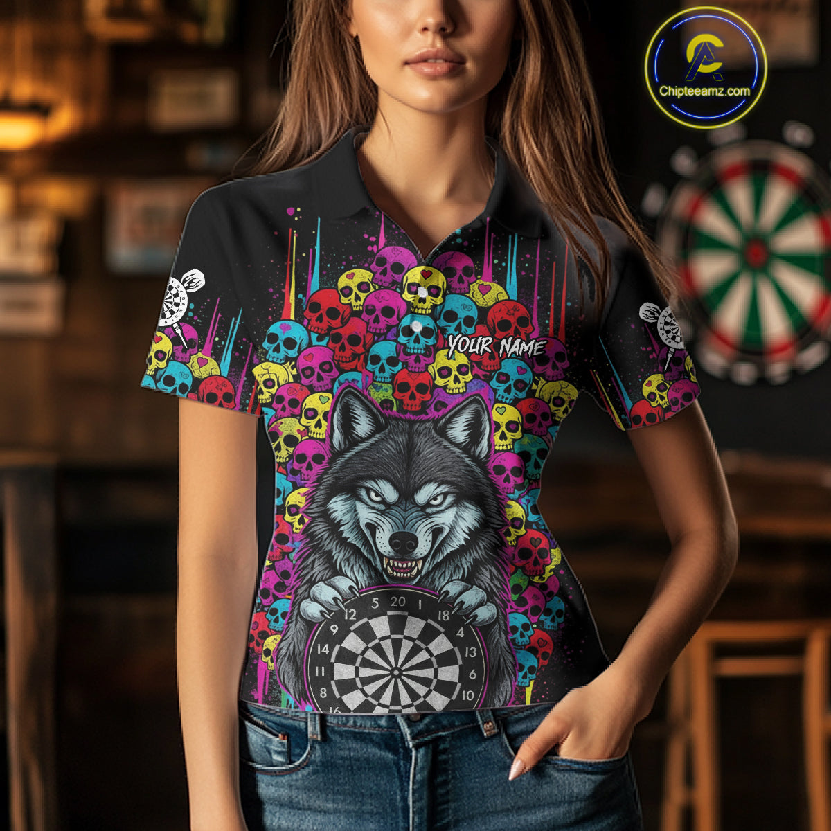 Multi-Color Skull Funny Wolf Dartboard Custom Darts Polo Shirt For Women Dart Team Gifts NYN2000