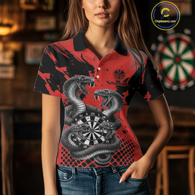 Black And Red Multi Cobra Grunge Dartboard Custom Women Polo Darts Shirt Dart Gifts NYN2018