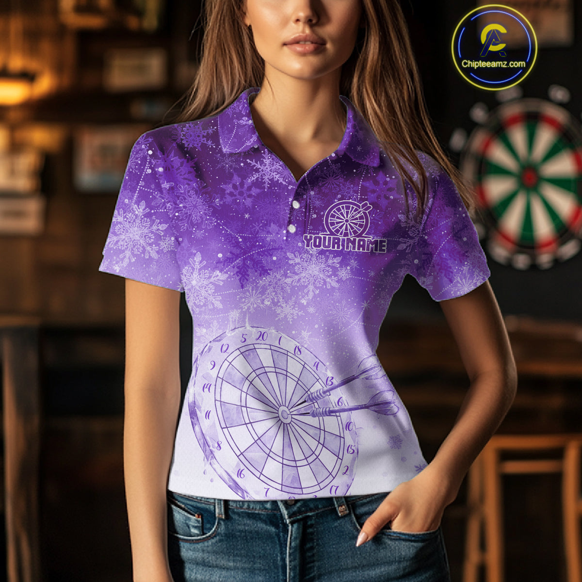 White & Purple Snowflakes Ice Dartboard Custom Polo Dart Shirt For Women Xmas Dart Jerseys NYN2026