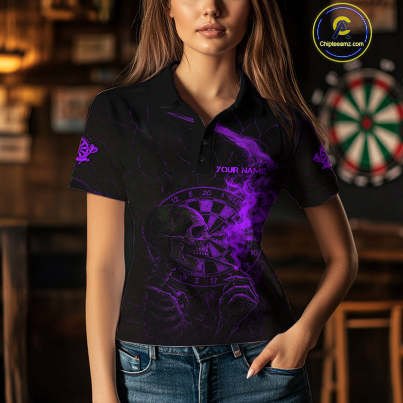 Purple Smoking Skeleton Bone Grunge Dartboard Custom Women Polo Dart Jerseys Dart Gifts NYN2035