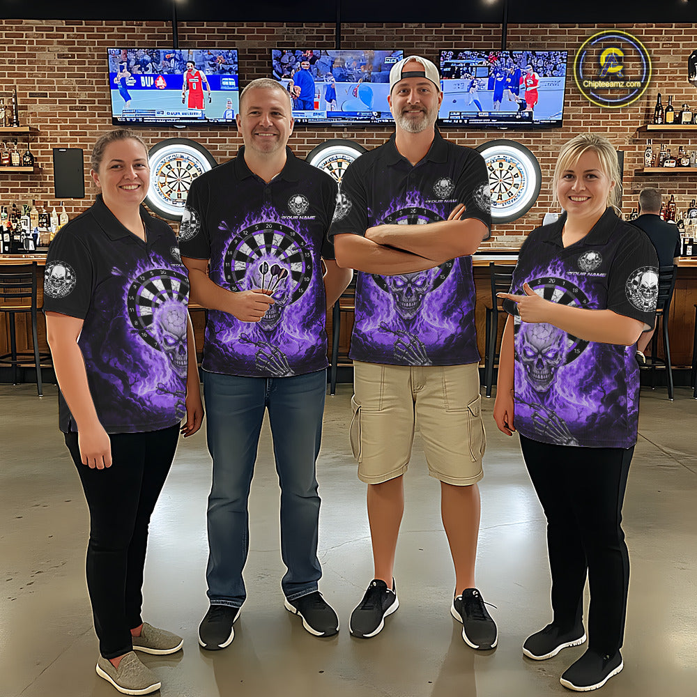 Black Purple Flaming Skeleton Darts Custom Women's Dart Polo Shirts Team Dart League Jerseys NYN2074