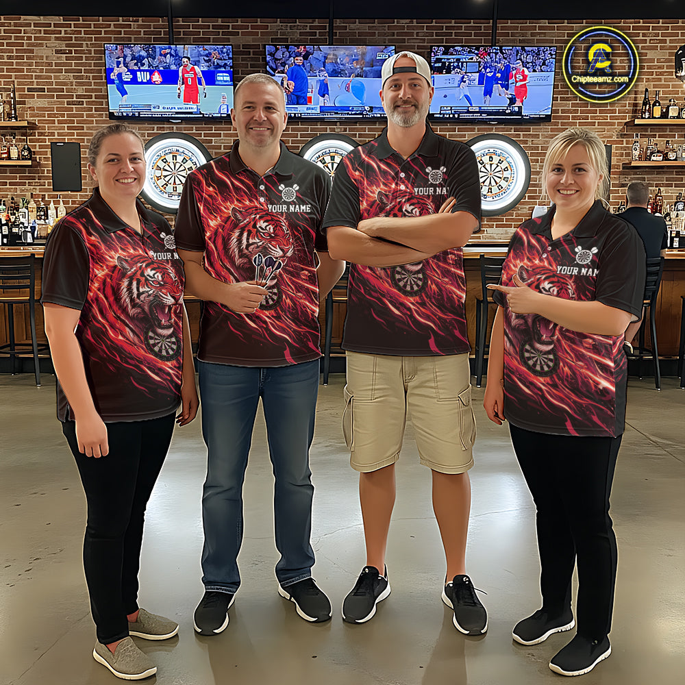Red Flaming Tiger Funny Darts Custom Women's Dart Polo Shirts Team Dart League Jerseys NYN2078