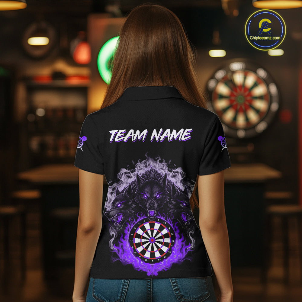 Grey And Purple Flames Wolf Custom Women's Funny Dart Polo Shirts Team Dart League Jerseys NYN2080