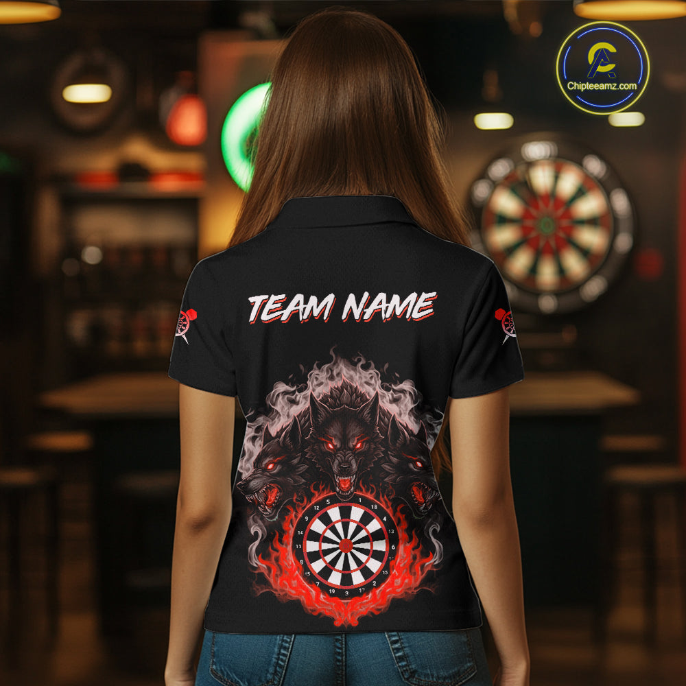 Grey And Red Flames Wolf Custom Women's Funny Dart Polo Shirts Team Dart League Jerseys NYN2081