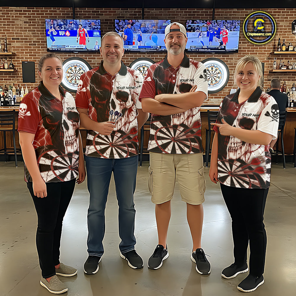 White & Red Skull Dartboard Custom Women Dart Polo Shirt Retro Grunge Dart League Jerseys NYN2083