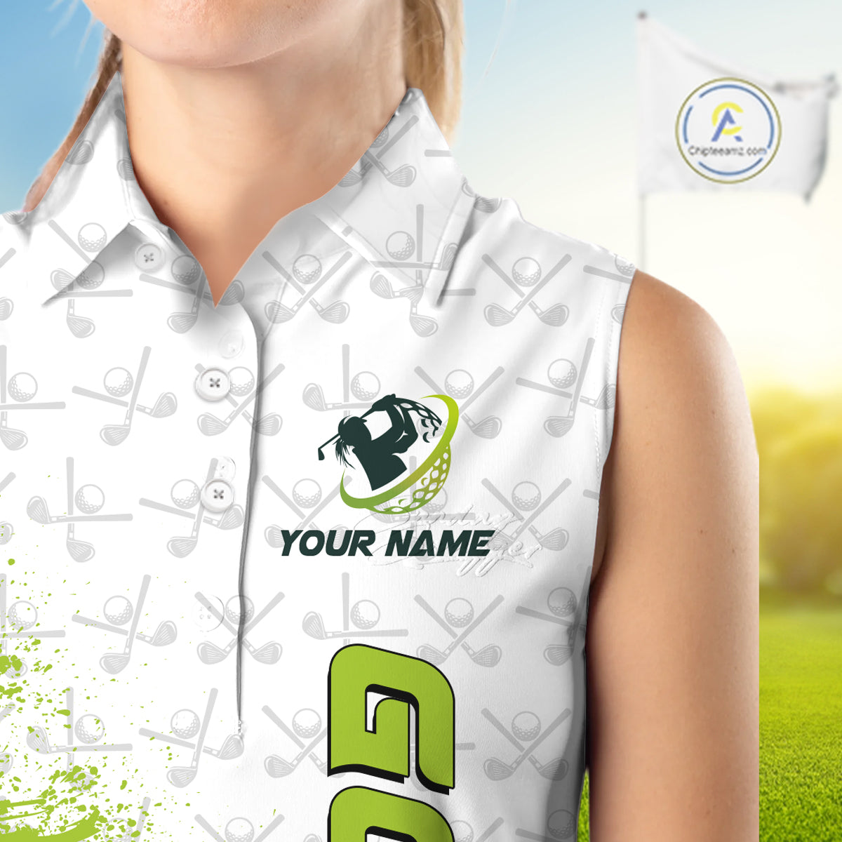 Green and White golf camo Women sleeveless polo shirt custom golf wear for ladies, best golf gifts NQS10170