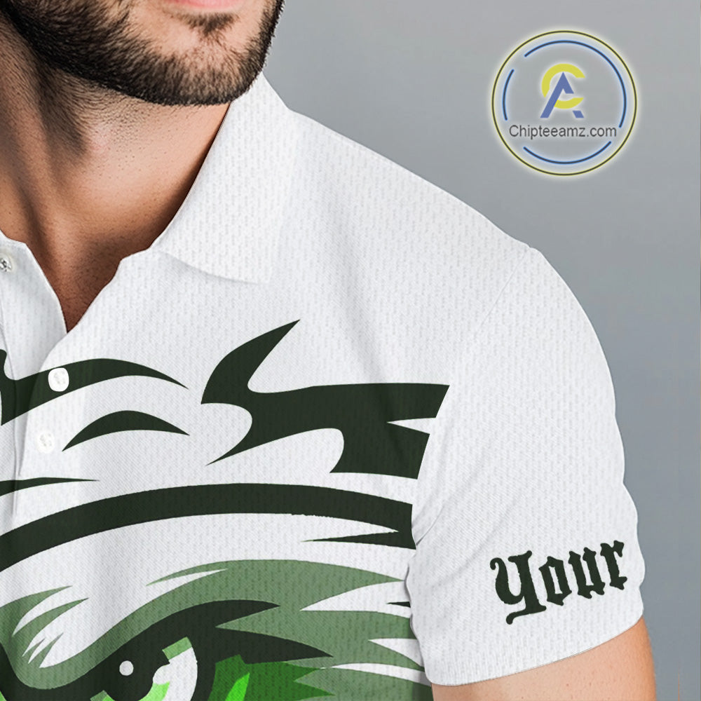 Mens golf polo shirts custom Green Eagle golf ball white golf tops, team golf attire for mens NQS10554