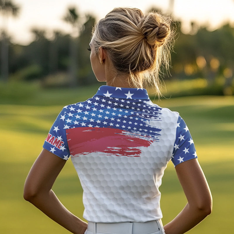 Personalized Red, White and Blue American Flag Women golf polo shirt Custom patriotic ladies golf tops NQS9550