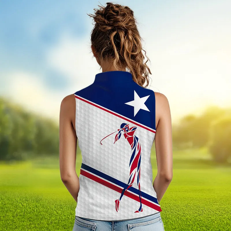Personalized Texas flag patriotic golf white Womens sleeveless polo shirt custom ladies golf tops NQS9357