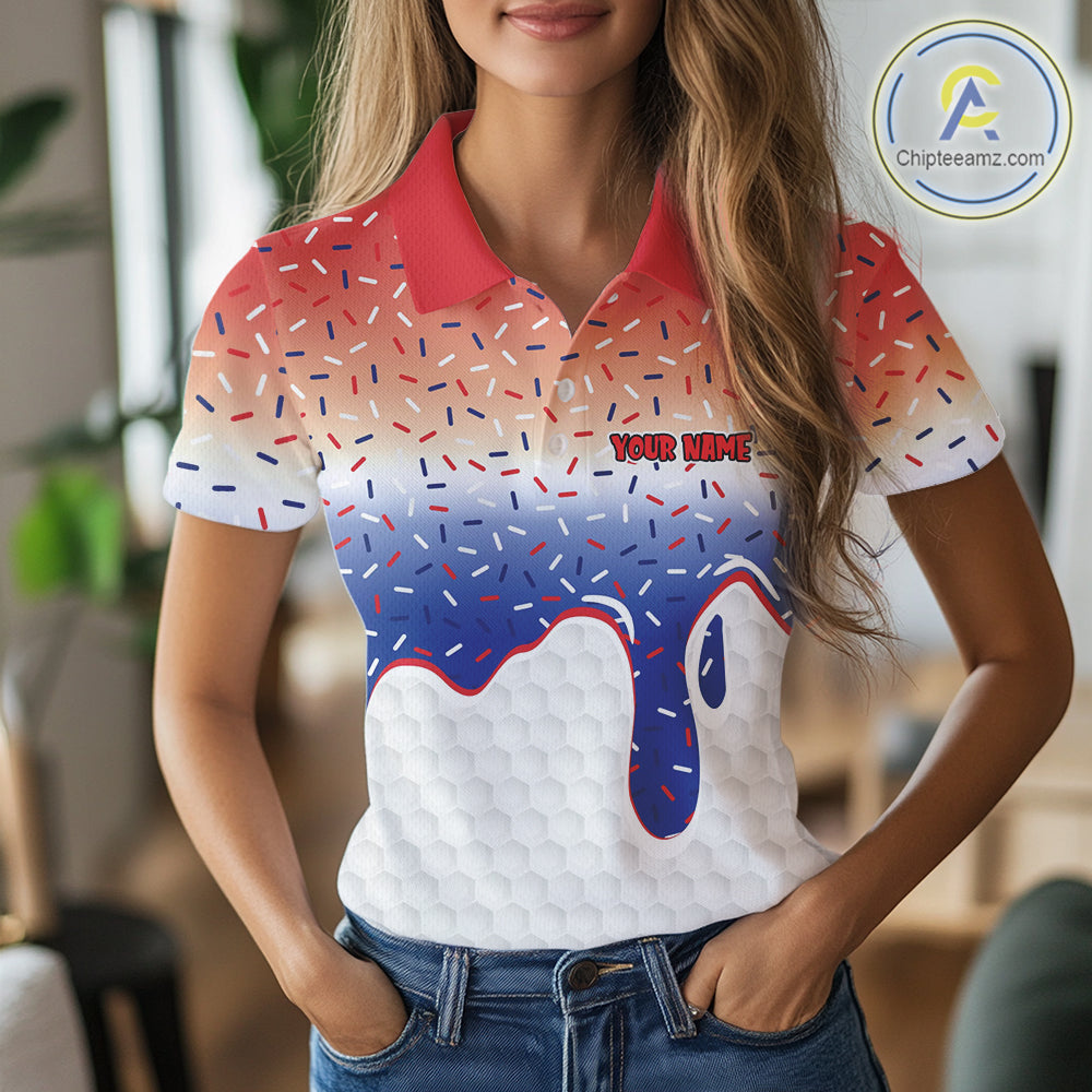 Red, white and blue dripping candy Women Golf polo shirts Custom funny Golf attire For Women NQS10058