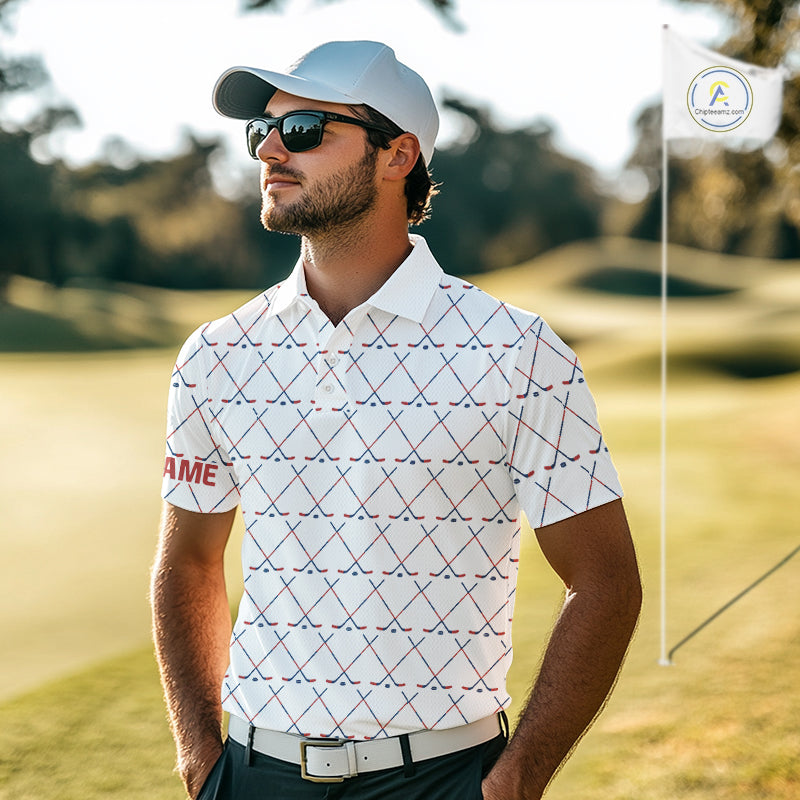 Red, White and Blue golf clubs pattern Men golf polo shirt Custom Patriotic golf outfits for men NQS10198