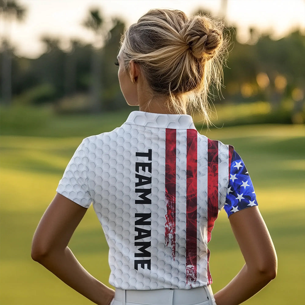 Red, White and Blue Smoke American Flag Women golf polo shirts custom Patriotic Women white golf polo NQS9380