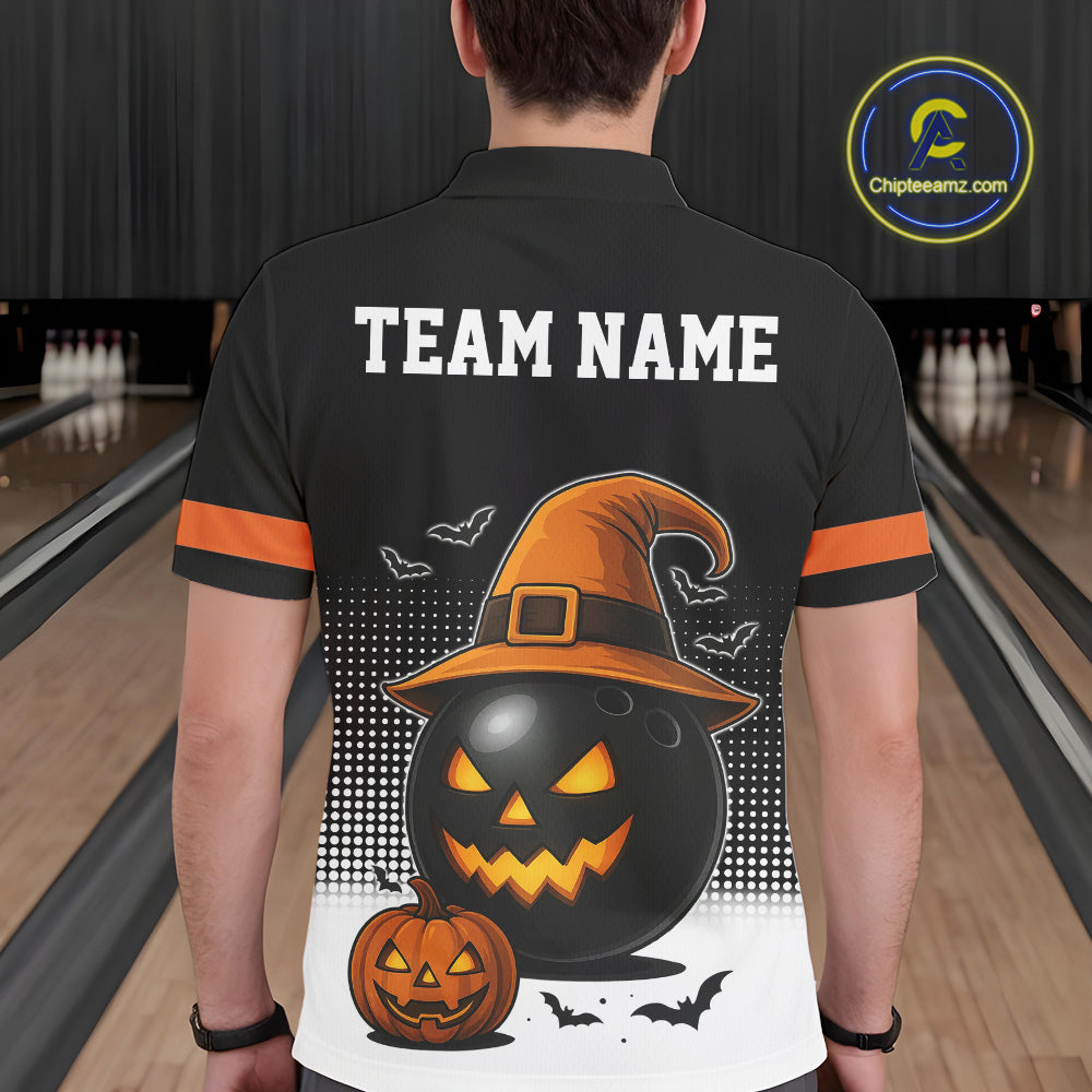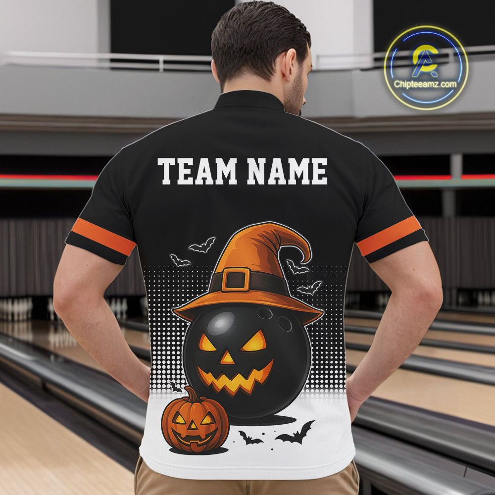 Black and Orange Funny Halloween Bowling Polo, 1/4 Zip Shirts For Men Custom team Bowling jersey NQS10780
