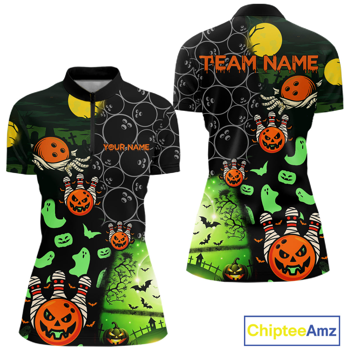 Custom Funny Halloween Team Bowling Shirts For Women, Personalized Halloween Bowling Gifts NQS10833