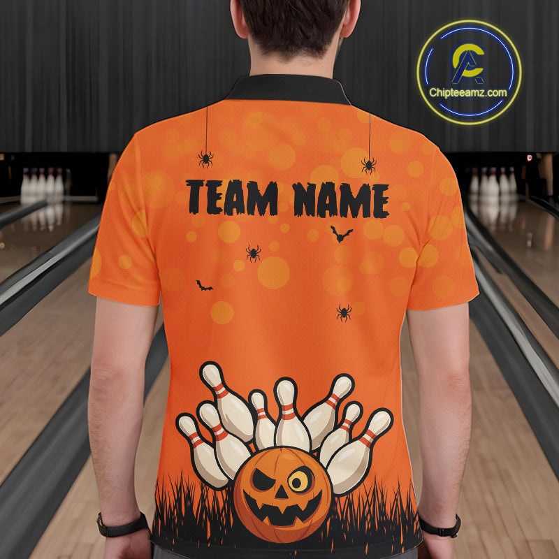 Custom Funny orange Bowling Team Shirt Halloween Polo & Quarter-Zip Bowling Jersey for Men NQS10396
