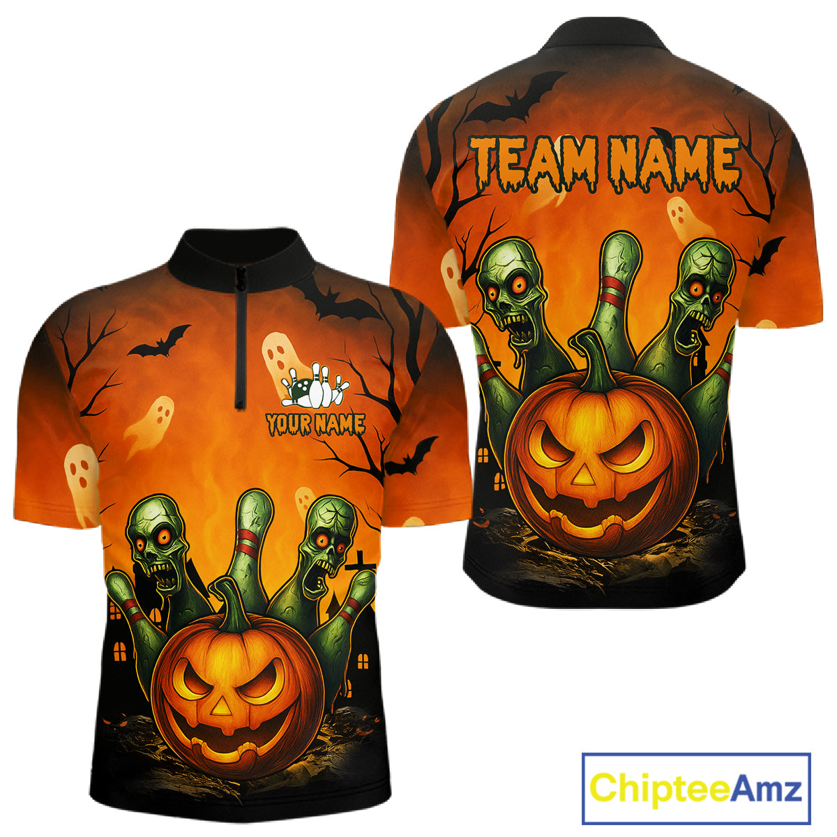 Custom Orange Bowling Team Shirt for Men Funny Bowling Jersey Halloween QZT774