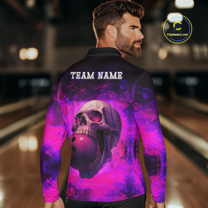 Custom Pink Flame Skull Halloween Bowling Shirts For Men, Personalized Team Bowling Jersey outfit NQS10401