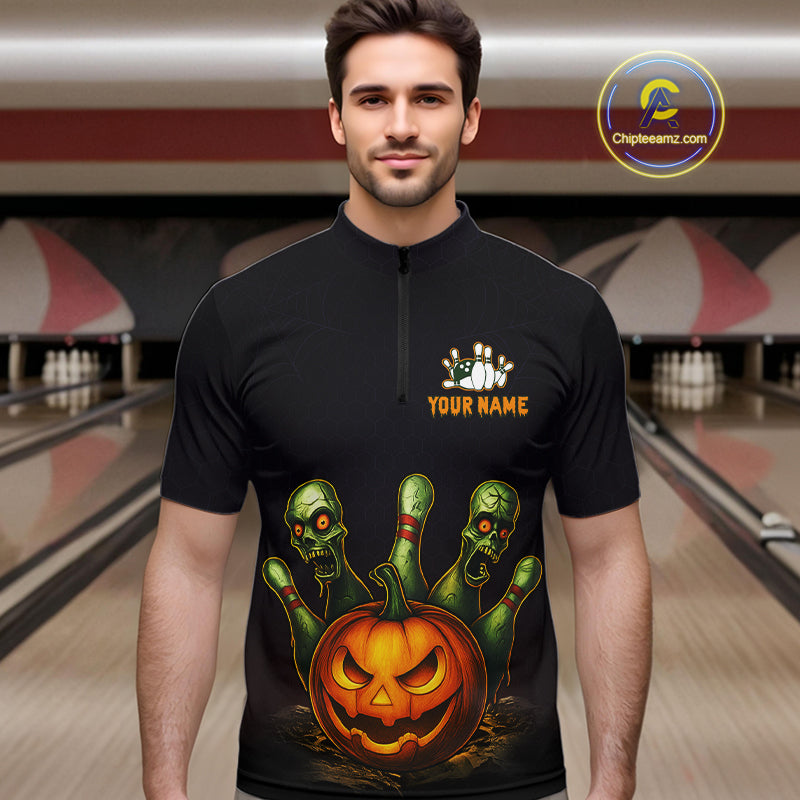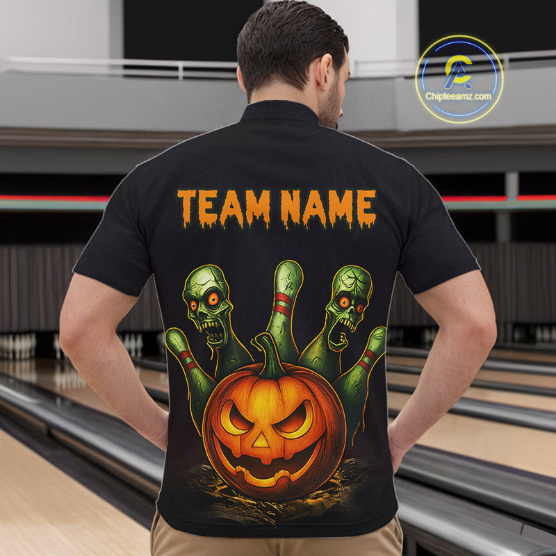 Custom Zombie Pumpkin Bowling Jersey for Men Halloween Bowling Team Shirt Bowling Gifts QZT730