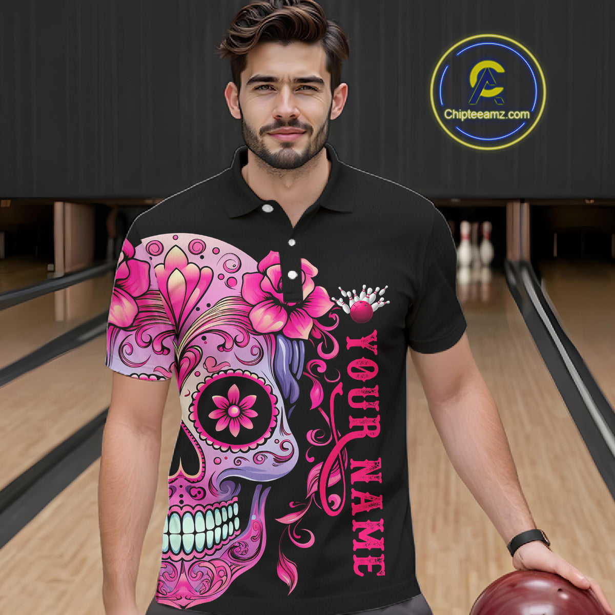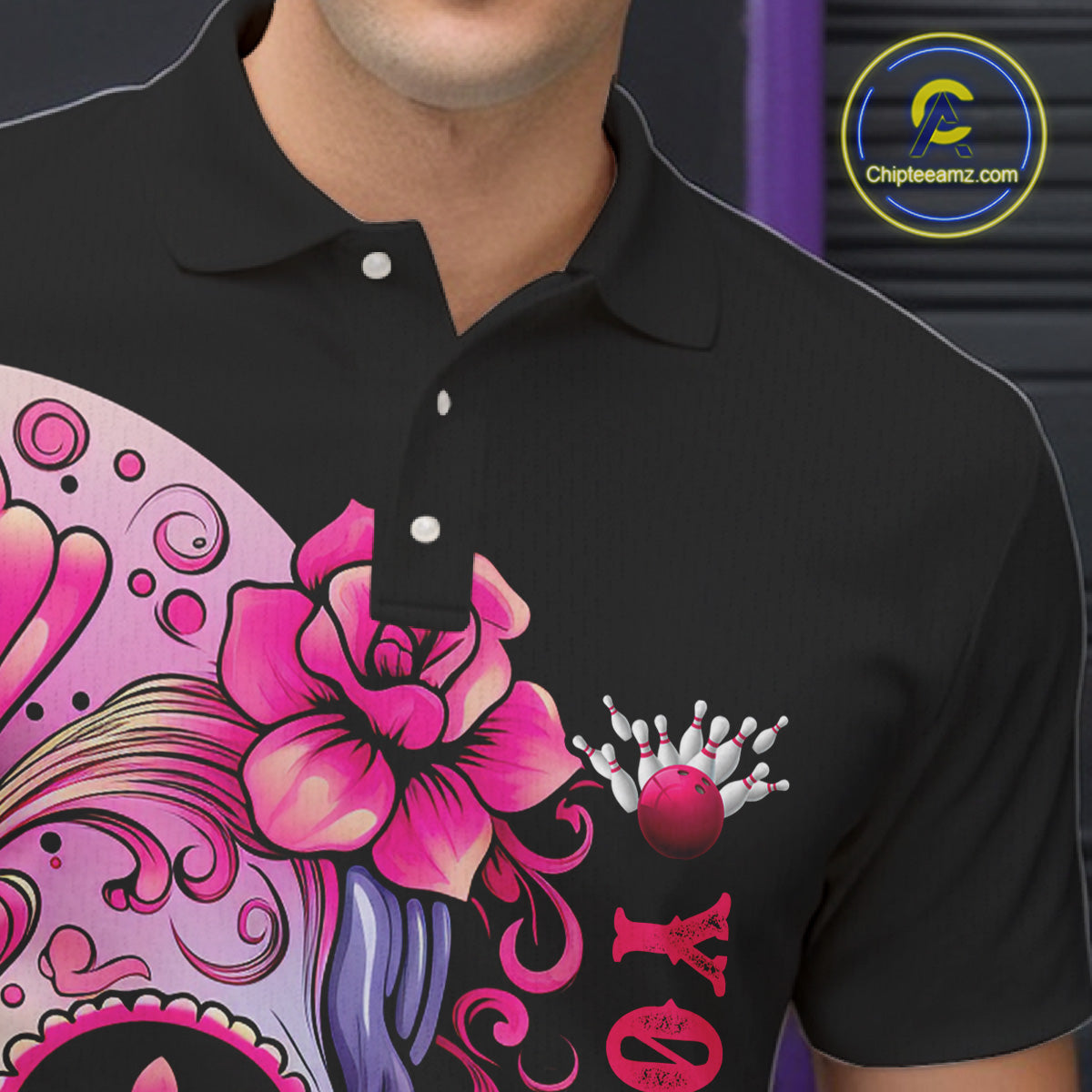 Pink Sugar Skull Tattoo Custom Unisex Team Bowling Polo Shirts, Halloween Team Bowling Jerseys IPHW5243