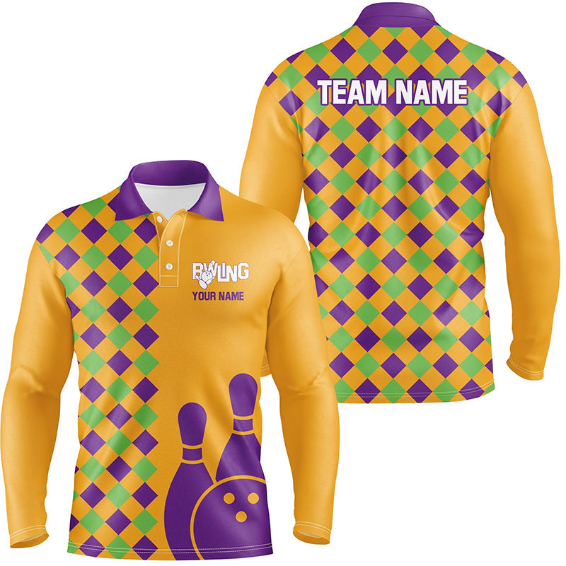 Orange Purple Argyle pattern Halloween custom bowling shirts for men, Bowling Team League Jerseys NQS8552