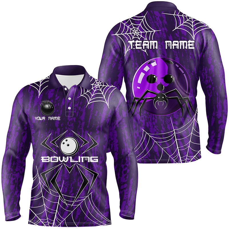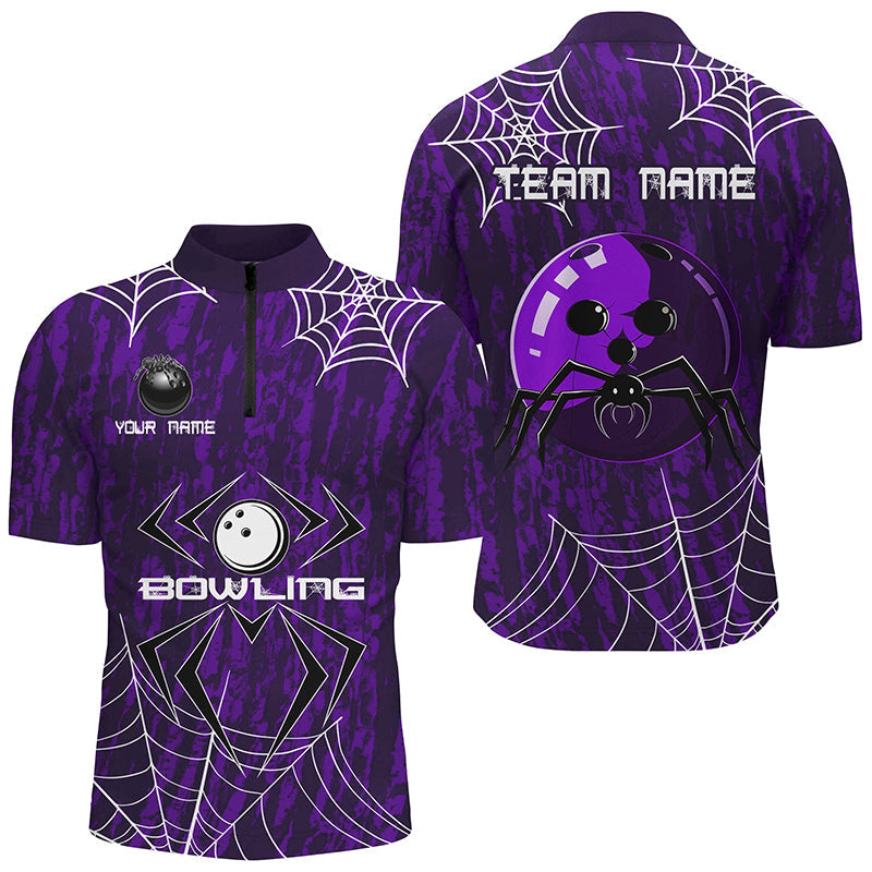 Purple Camo Bowling Polo, 1/4 Quarter zip shirts Custom Spider web Halloween Men Team Bowling jerseys NQS8343