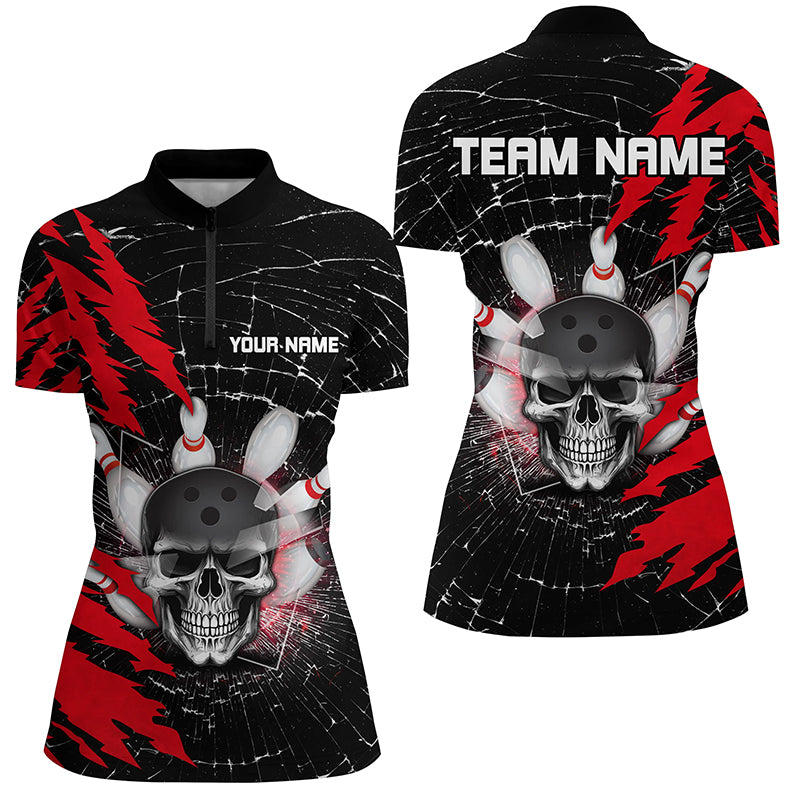Skull Bowling Quarter-Zip Shirt For Men & Women Custom Halloween Bowling Team Jersey Red BDT538