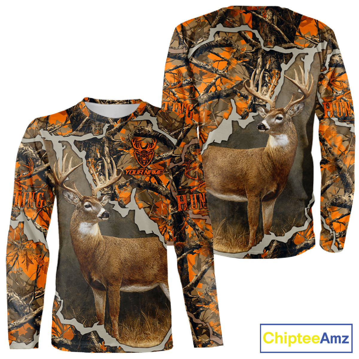 Whitetail Deer Hunting Custom Name Orange Camo Shirt, Deer Hunting Apparel, Camouflage Deer Shirts NBT339