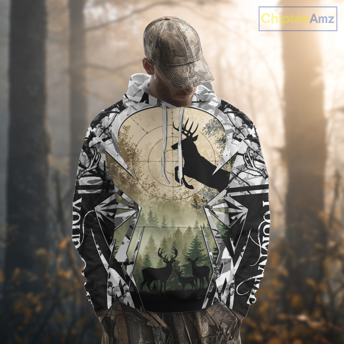 Personalized Deer Hunting Hoodie/ Long sleeves Shirts. Designed for deer hunters and outdoor enthusiasts, this shirt blends style, comfort, and funtionality in one. The unique hunting-inspired design can be personalized with your name, along with details like the American flag, camouflage patterns, and more - making it the perfect gift ideas for hunters during deer hunting season.