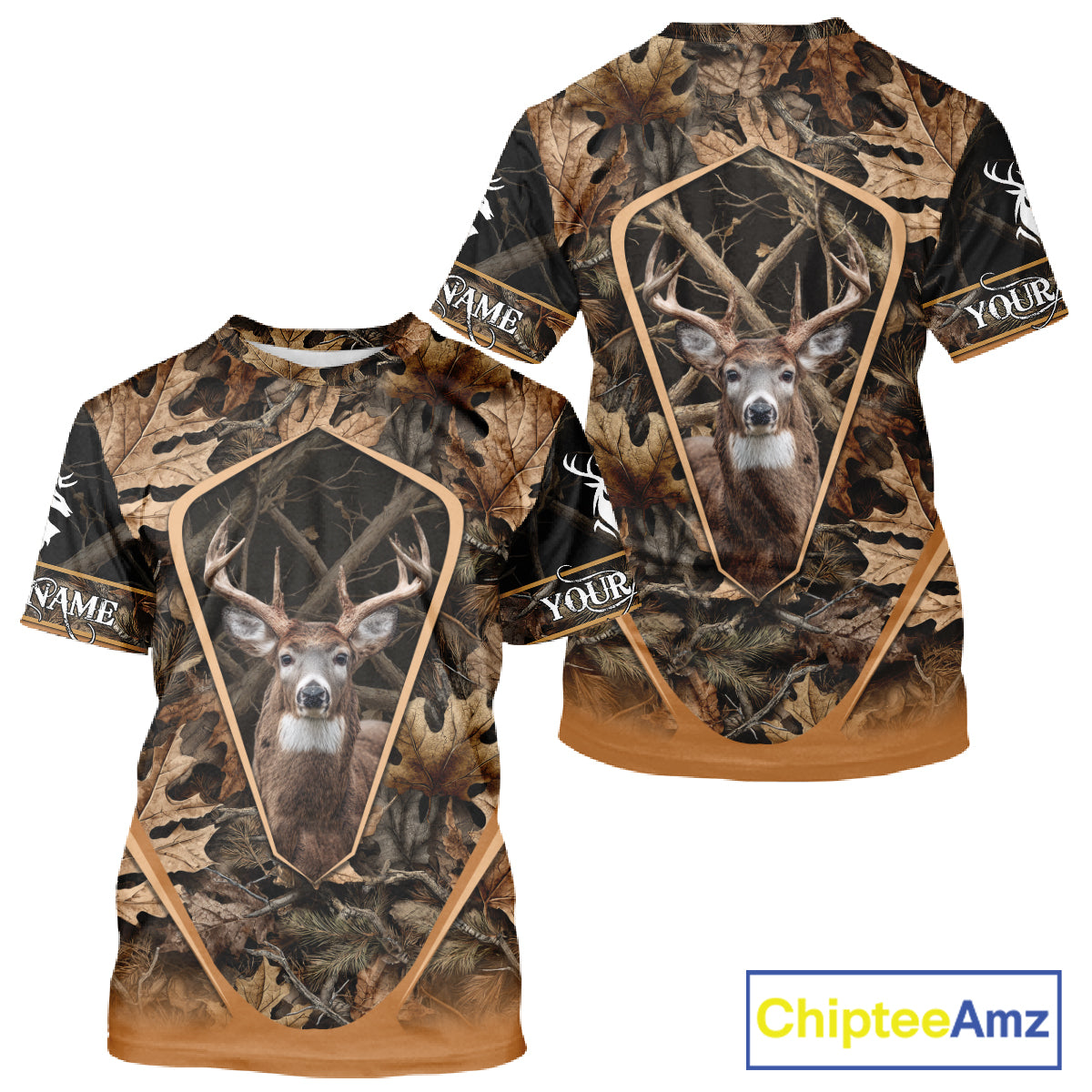 Personalized Whitetail Deer Hunting 3D All Over Printed Hoodie Brown Autumn Leaves Camo NHT314